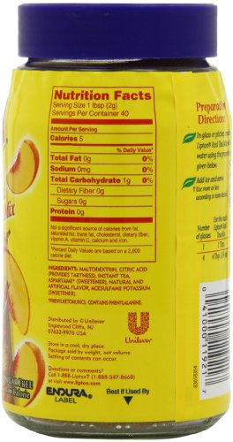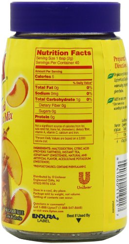 -. Title : Lipton Iced Tea Mix, Diet Peach 2.9 oz , ( Pack of 4 )