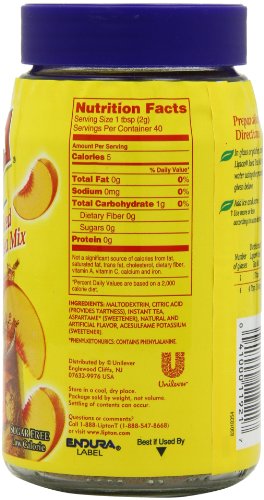 -. Feature : Enjoy the refreshing taste of iced tea and the sweet flavor of peaches / Pack of four 2.9-ounce jars / 100% natural, zero calorie, sugar free, no added preservatives and colorings / Thirst-quenching and delicious this iced tea mix is brewed from real tea leaves
