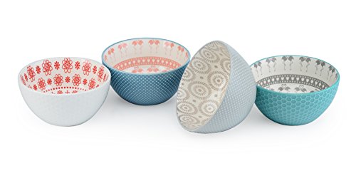 Signature Housewares 28 oz Pad Print PP8 Assorted 6" Bowls (Set of 4), Multicolor