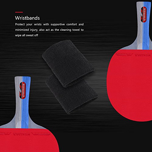 Ready to compete in fierce table tennis games with your partner? Never let sports fun stop suddenly due to the flimsy rackets you bought in other shops! Now it's time to kick your performance up a notch and have a blast with your family or friends with our popularly preferred table tennis set highly recommended to all-rounders here! A Secret Performance Weapon to Sharpen Your Skills at Next Game! ***Easy-to-Grip Long Handle: Ideal for players who seek for ergonomically comfortable gripping, our rackets come with unique flared handles, which delivers superior grip on the blade and enough flexibility to help you wow the audience. ***High-Performance Rating - Spin: 90 Speed: 95 Control: 92 These rackets are specially designed with 5-ply wood blade for advanced speed, ball control and added spin as well as 2mm high-bounce sponge layer that features maximum elasticity, allowing you stay ahead in the game. ***Free Carry Bag 2pcs Wristbands Included 1) Sweat-absorbent Wristbands Work to cool you down and pull moisture away from your body, keeping you comfortable throughout the game; 2) Portable Carry Bag for On-the-Go Use Handily helps store and protect your rackets when they're not in use and allow you to take all the stuffs along anywhere you go. 0 |