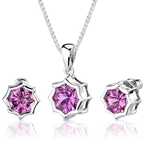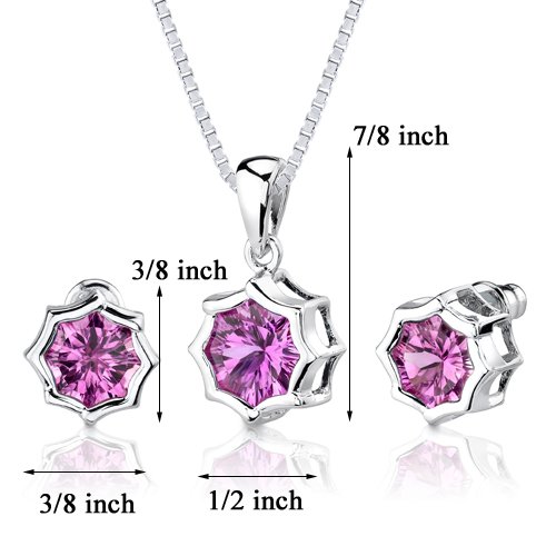 -. Feature : Created Pink Sapphire, Gorgeous Pink Hue with Brilliant Sparkle / Pendant and Earrings are in .925 Sterling Silver and finished with Rhodium / Top Quality Craftsmanship / Exceptional Styling / 30 Day Return Policy