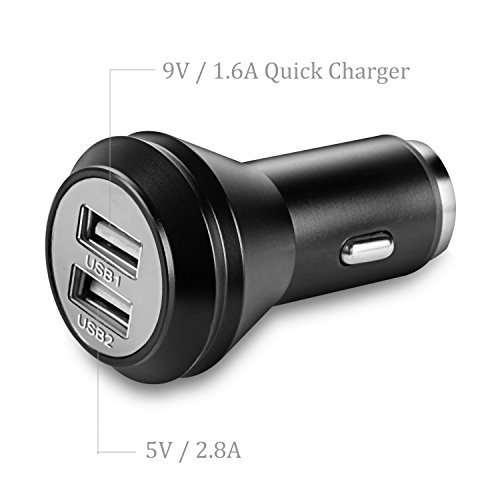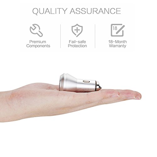 LERMX Quick Charger 2.0 Car Charger Cigarette Aluminum USB Fast Car Chargers Dual-Port with Escape Emergency Circular Metal Safety Hammer Function Portable Car Adapter for iPhone Samsung iPad (Silver)