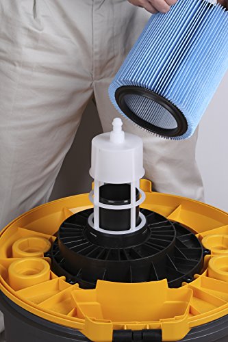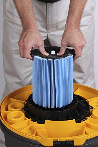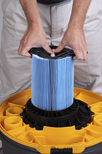 The pleated cartridge filter design on this wet dry vacuum filter allow the filter to have more surface area in a confined space improving airflow and reduce clogging.
