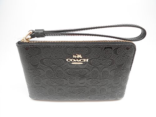 -. Title : Coach F58034 Black Signature Debossed Patent Leather Corner Zip Wristlet