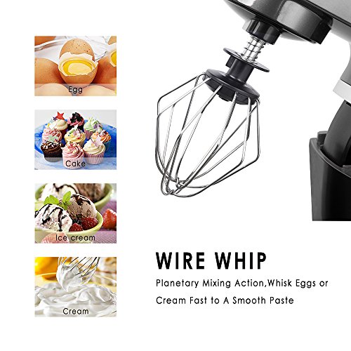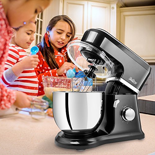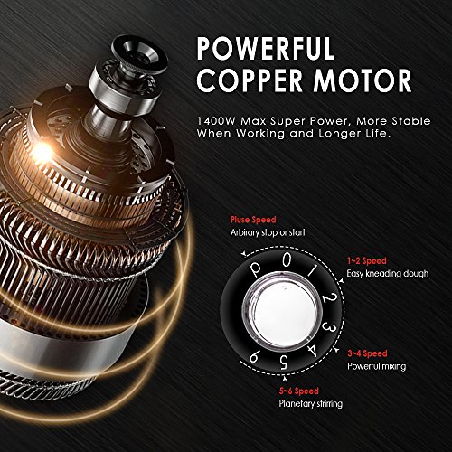 Strong metal gear system and stainless steel bowl with detachable transparent bowl cover, 4.0 qt bowl made of 304 high quality stainless steel for maximum 1.5kgs ingredients at one time.