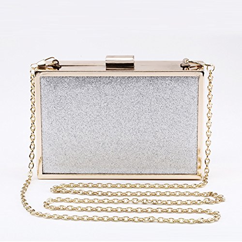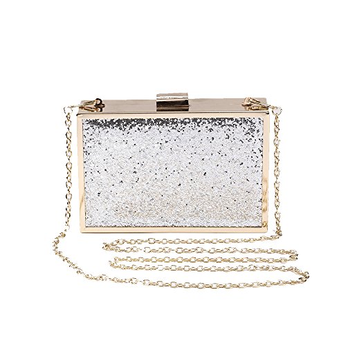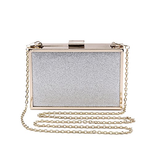 Women's Bling Shiny Glitter Square Clip Clasp Evening Clutch Crossbody Party Wedding Bag Purse
