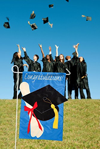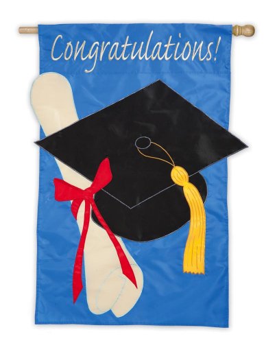 Celebrate in style with this graduation cap double-sided appliqué house flag; Features intricate details, captivating embellishments, and timeless touches, brilliantly blending quality design with stylish charm