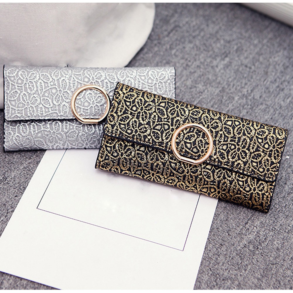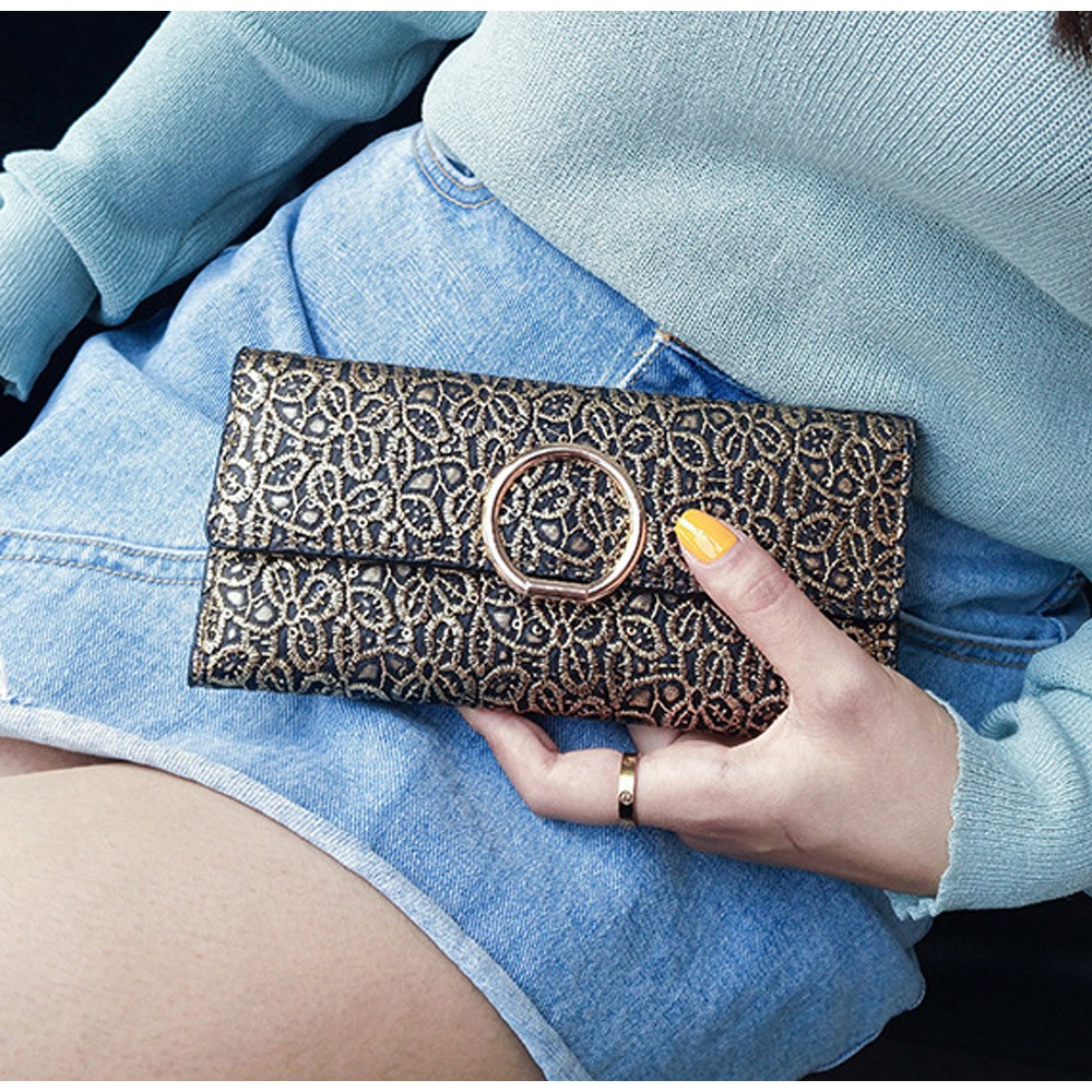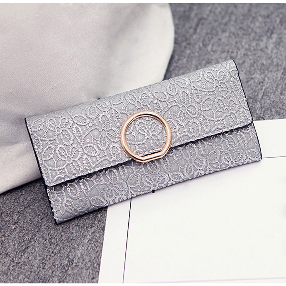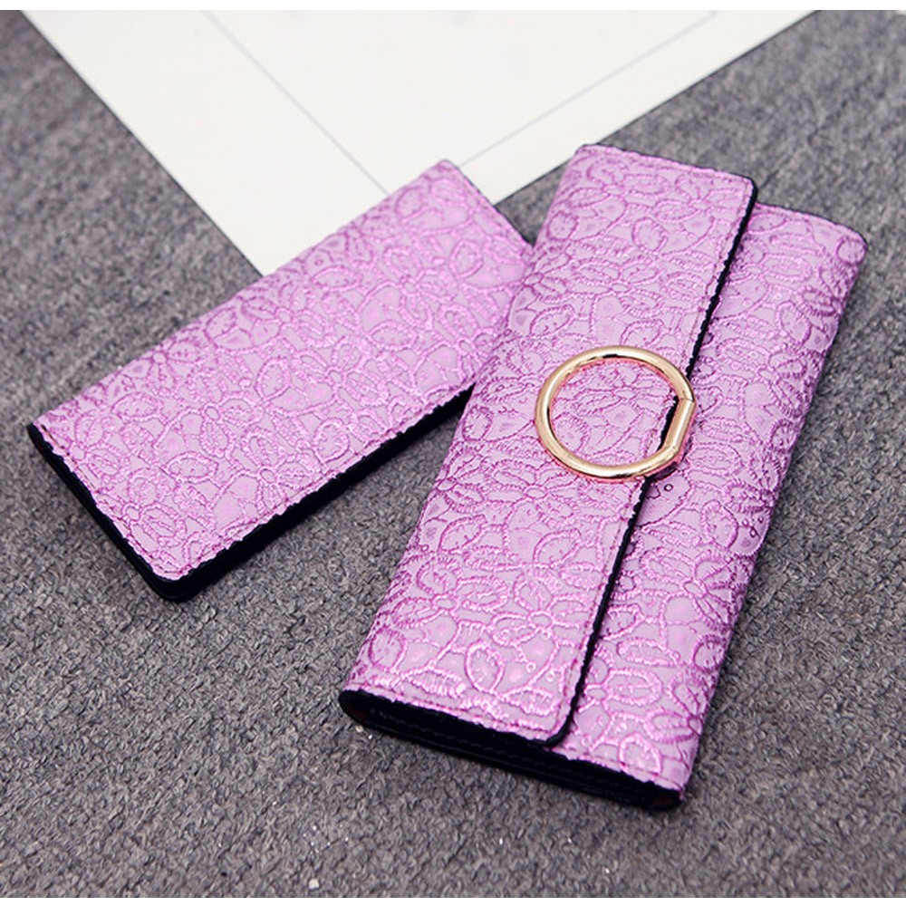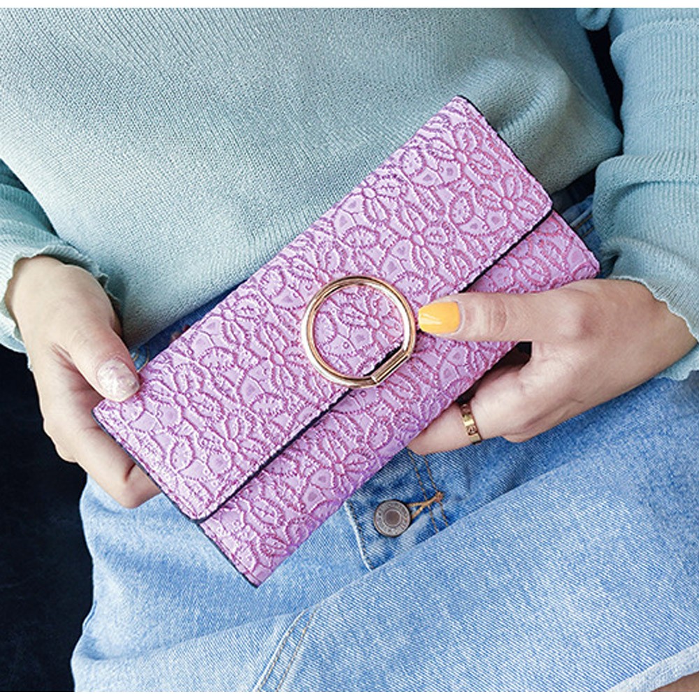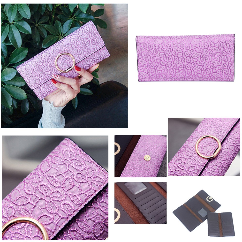 上質で上品な総柄刺繍レース生地の大人女性用ロングウォレット