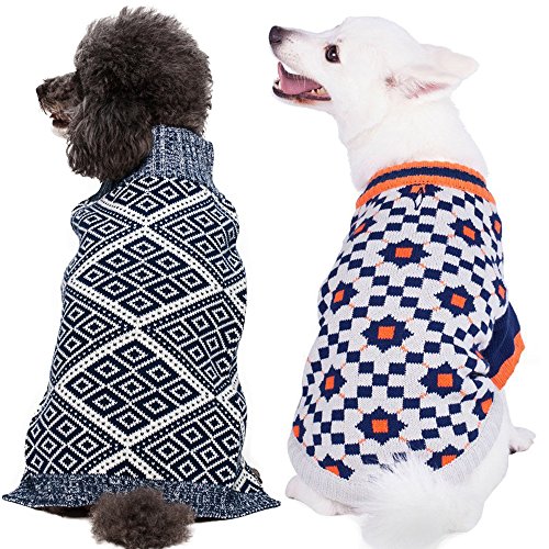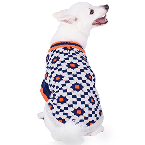 Title : Blueberry Pet Chic Dog Sweater with Vintage Octagons and Squares, Back Length 16", Pack of 1 Clothes for Dogs