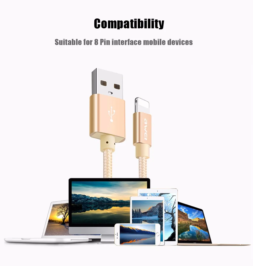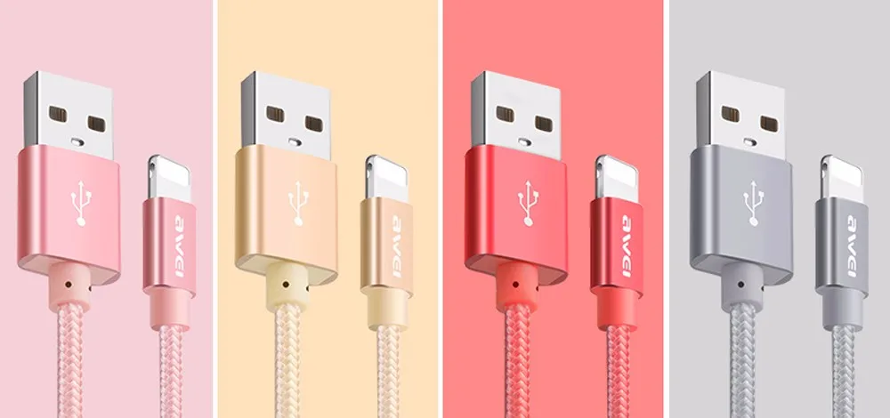 For iphone Cable Awei CL - 988 8 Pin Mini USB Smart Data Cable Nylon Braided Cable Transfer Data Synchronization Cord 0.3m u0026nbsp;