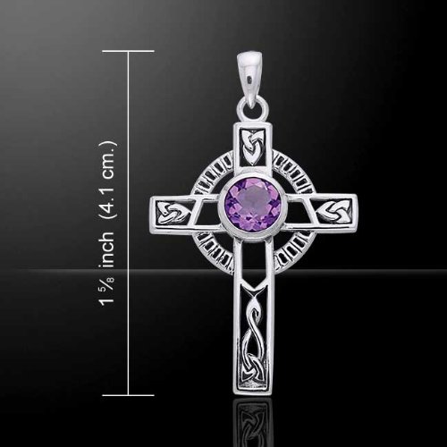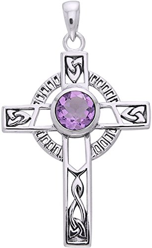 -. Title : Jewelry Trends Sterling Silver Celtic Knotwork Cross with Amethyst Pendant on 18 Inch Chain Necklace