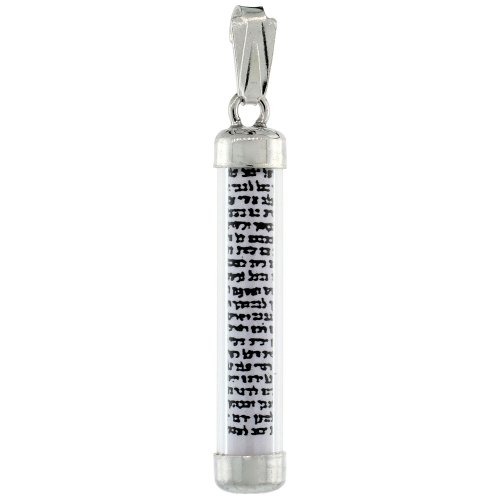 -. Title : Sterling Silver Mezuzah Scroll Pendant in Tubular Glass Case, 1 1/4 inch (33 mm) tall
