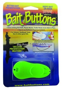 -. Binding : Sports -. Brand : BAIT BUTTONS -. Color : Green -. EAN : 0094922489234 -. Feature : Bait buttons come in easy to use refillable dispenser, Bait buttons keep bait in place on hooks up to 4/0 / Bait buttons keep your bait from sliding down the HOOOK It keeps it in the natural position for more hook-ups / Dispenser is preloaded with 100 bait BUTTONS, EASY Transfer of bait button to hooks up to 4/0 -. Label : Bait Buttons -. Manufacturer : Bait Buttons -. Model : 48923 -. MPN : 48923 -. PackageQuantity : 1 -. PartNumber : 48923 -. ProductGroup : Sports -. ProductTypeName : SPORTING_GOODS -. Publisher : Bait Buttons -. Studio : Bait Buttons -. Title : BAIT BUTTONS Original/Dispenser, Green -. UPC : 094922489234