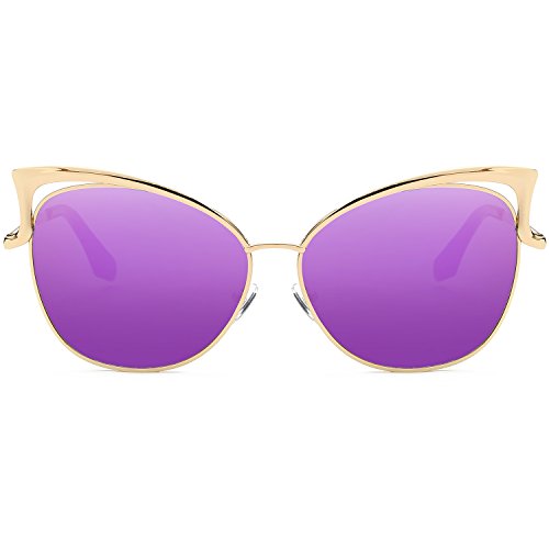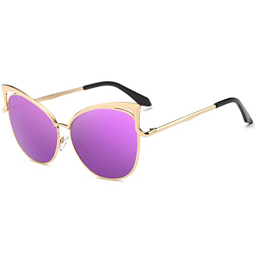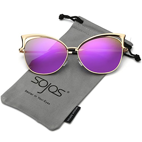 SojoS Fashion Cat Eye Style Metal Frame Women Sunglasses Lady Glasses SJ3163 With Gold Frame/Purple Mirrored Lens