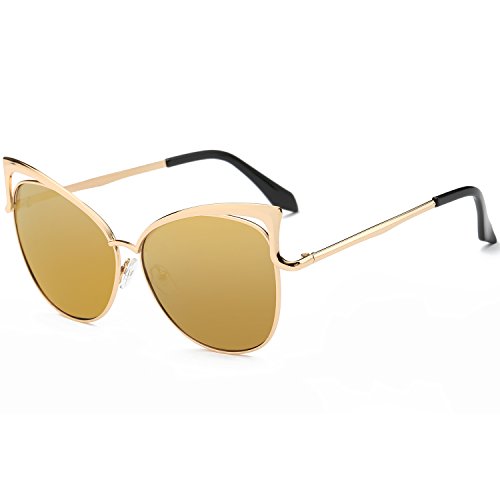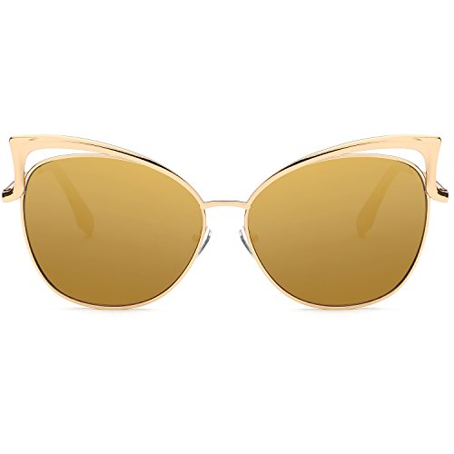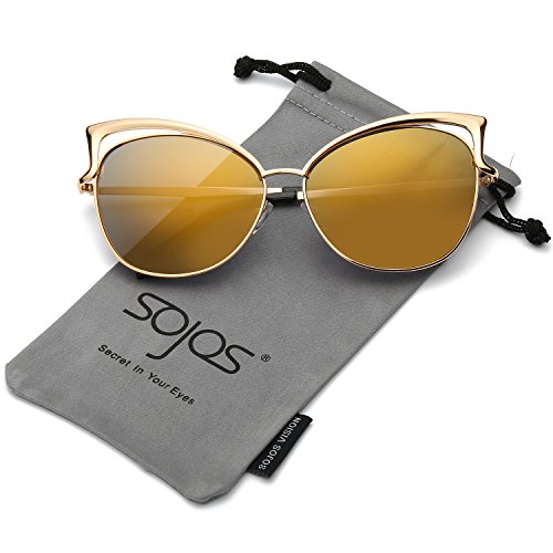 SojoS Fashion Cat Eye Style Metal Frame Women Sunglasses Lady Glasses SJ3163 With Gold Frame/Gold Mirrored Lens