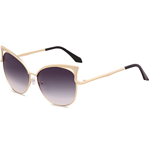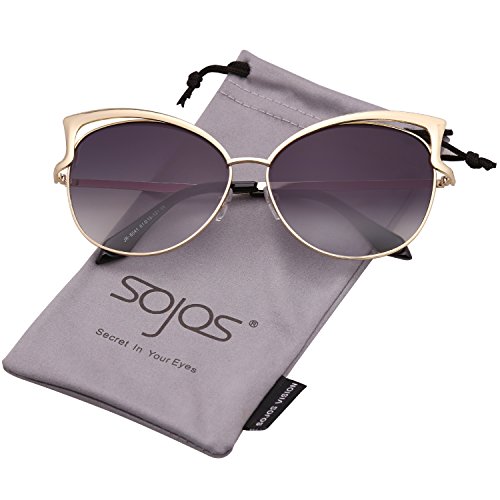 SojoS Fashion Cat Eye Style Metal Frame Women Sunglasses Lady Glasses SJ3163 With Gold Frame/Grandient Grey Lens