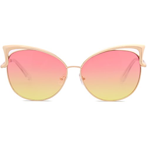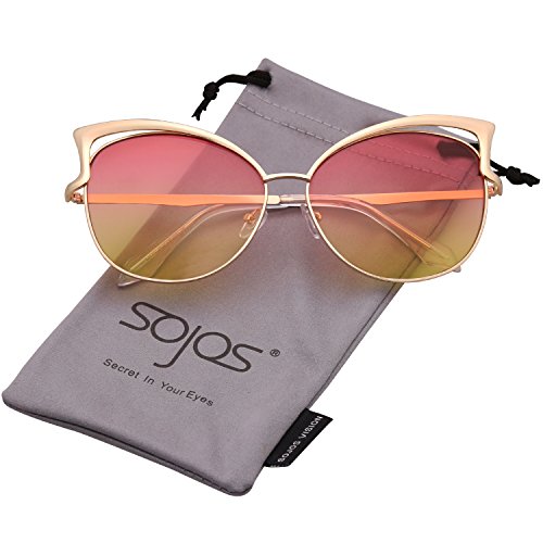 SojoS Fashion Cat Eye Style Metal Frame Women Sunglasses Lady Glasses SJ3163 With Gold Frame/Pink and Yellow Lens