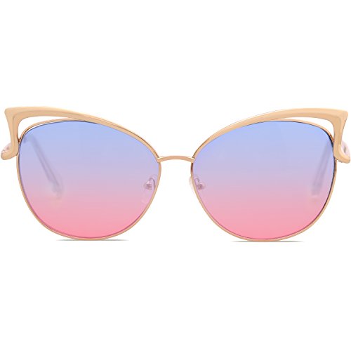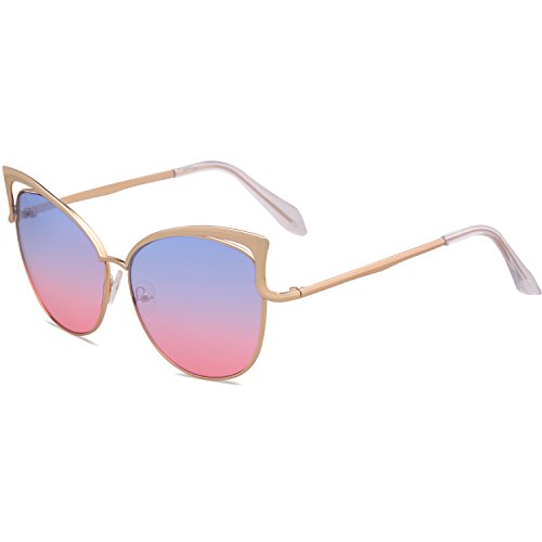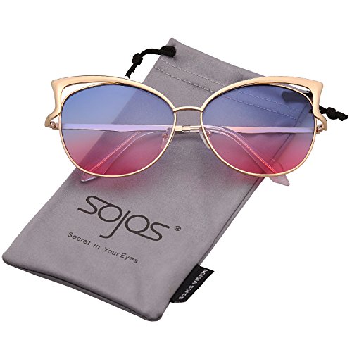 SojoS Fashion Cat Eye Style Metal Frame Women Sunglasses Lady Glasses SJ3163 With Gold Frame/Blue and Pink Lens