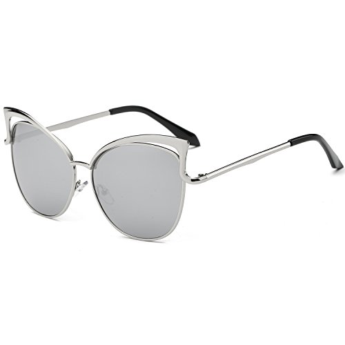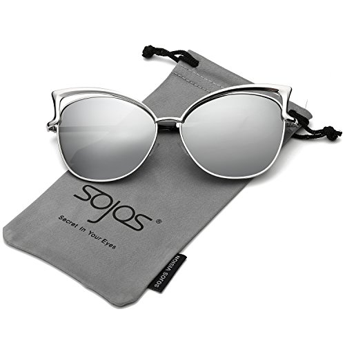 SojoS Fashion Cat Eye Style Metal Frame Women Sunglasses Lady Glasses SJ3163 With Silver Frame/Silver Mirrored Lens