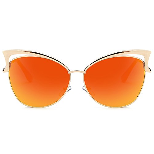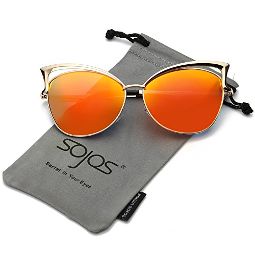 SojoS Fashion Cat Eye Style Metal Frame Women Sunglasses Lady Glasses SJ3163 With Gold Frame/Red Mirrored Lens