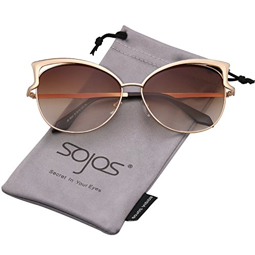 SojoS Fashion Cat Eye Style Metal Frame Women Sunglasses Lady Glasses SJ3163 With Gold Frame/Grandient Brown Lens