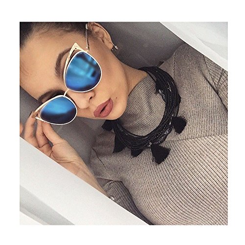 SojoS Fashion Cat Eye Style Metal Frame Women Sunglasses Lady Glasses SJ3163 With Gold Frame/Blue Mirrored Lens