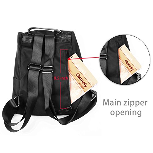 Made of water resistant nylon, the casual backpack is specially crafted for women ladies; Kindly note this model doesn't open on the top, the main zipper opening is on the back, with approximate length of 8.5 inch