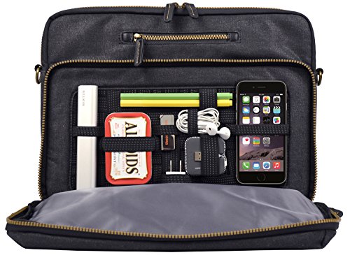 -. Feature : Accommodates Up To a 13" MacBook/Laptop with Built-In GRID-IT! W:11.25" x H:5.5" / Padded Laptop Compartment, Padded Tablet Compartment, Media Pocket Keeps Small Devices Handy, Convenient Document Pocket / Built-In Hand Strap Makes Carrying Your MacBook/Laptop Easier, Detachable/Adjustable Padded Shoulder Strap / Water Resistant