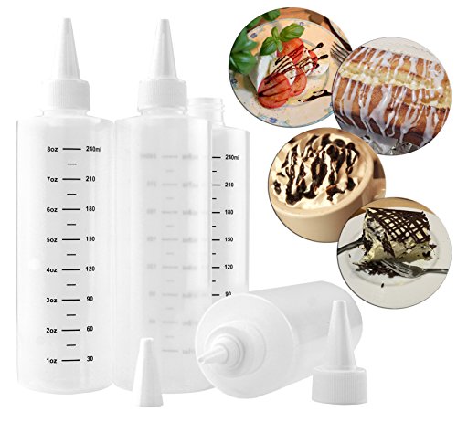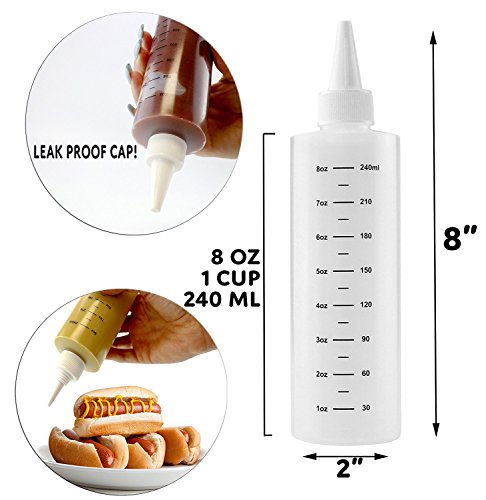 8-Ounce Plastic Squeeze Bottles with Graduated Measurements (8-Pack); Great for Frosting, Cookie Decorating, Condiments & Crafts