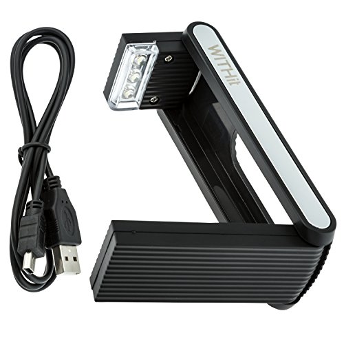 Fold Light by WITHit - Black - 3 LED Rechargeable Reading Light - LED Book Light - LED Reading Light - Book Reading Light