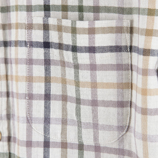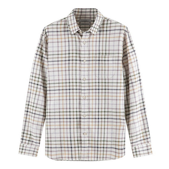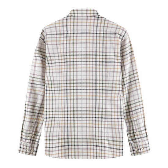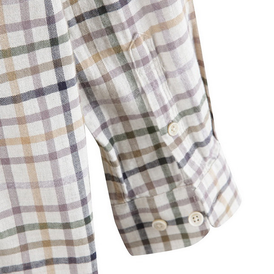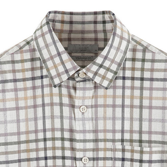 - 헤링본 바탕에 컬러 체크 패턴을 적용한 남성 셔츠.