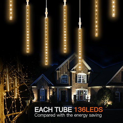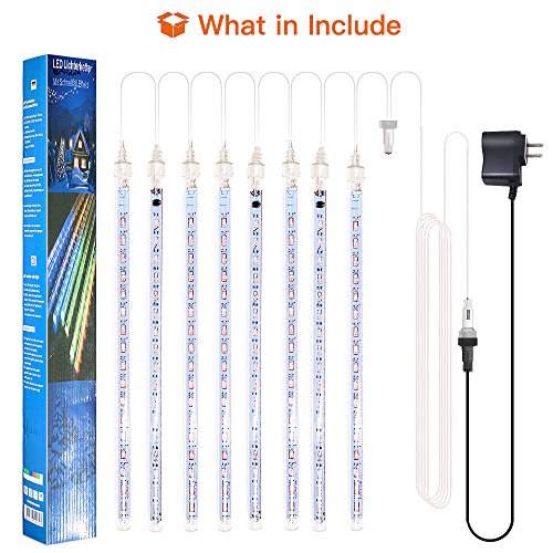 Specs: tube length: 11.8inch/ 30cm, tube quantity: 8 tubes, LED bulbs of per tube: 18, number of LED bulbs: 8 tubes x 18LED (144LED Lights); plug type: US plug; Voltage: 110V-220V, Watt: 5W. With tail plug, you can connect more than 2 lot of meteor light together, DIY your own meteor.