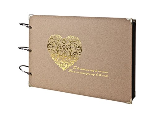 Farway DIY Photo Album with Black Pages 10 x 7 Inch Picture Scrapbook for Our Love Story Wedding Anniversary Couples Family Friends Memory Book Scrapbooking (Gold Heart)