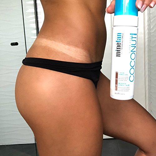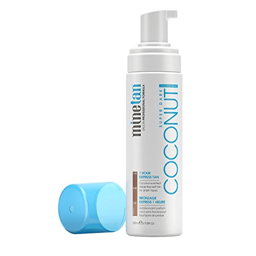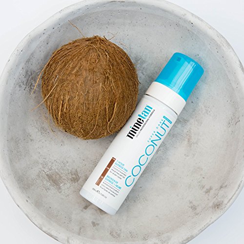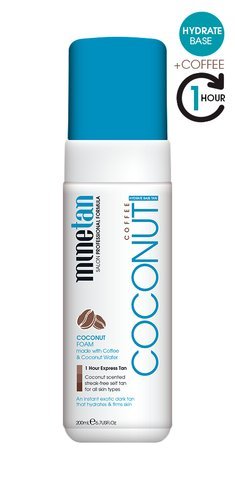 COCONUT HYDRATE BASE 1 HOUR EXPRESS TAN made with Coconut Water. Coconut from MineTan is an intense hydrating skin therapy experience that instantly gives you an exotic dark tan. The world's first coconut water based tan is a one-of-a-kind bronzing treatment, supercharged with antioxidants to restore skin hydration whilst revitalising the skin. The weightless formula absorbs quickly to lock in moisture, while essential fatty acids found in natural coconut soothe dry areas and improve overall skin texture and tone. The boost in hydration replenishes the skin, making this 1 Hour Tan work as a natural moisturiser while delivering a fast, rich dark brown finish. Coconut is for all skin types wanting an instant exotic dark tan that restores skin hydration.Feature