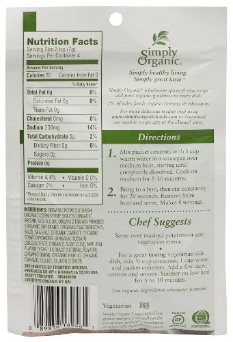 Simply Organic Vegetarian Brown Gravy, Seasoning Mix, Certified Organic, 1-Ounce Packets (Pack of 12)