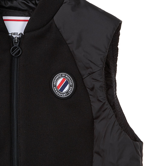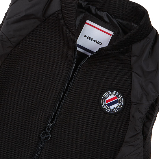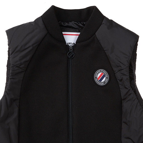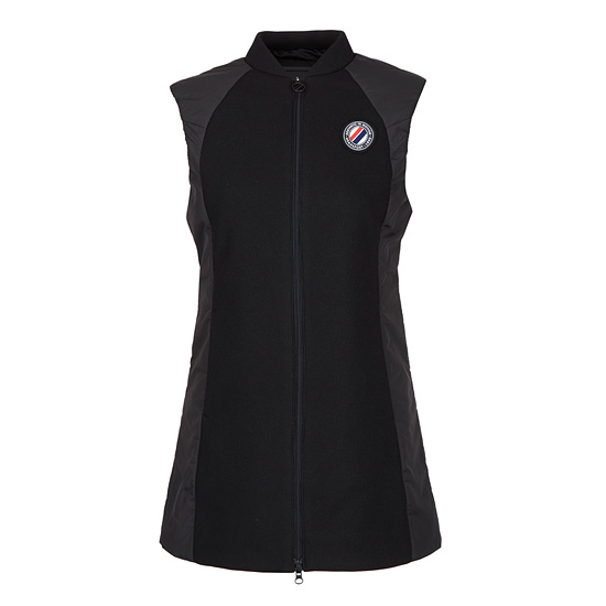 - 테니스 무드의 로고와 레터링 자수, 지퍼로 포인트를 준 여성 베스트.