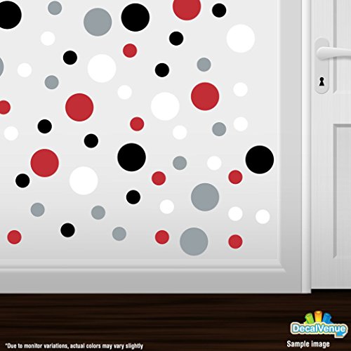 Set of 60 Circles Polka Dots Vinyl Wall Graphic Decals Stickers (Red / Black / Silver / White)
