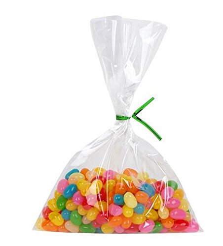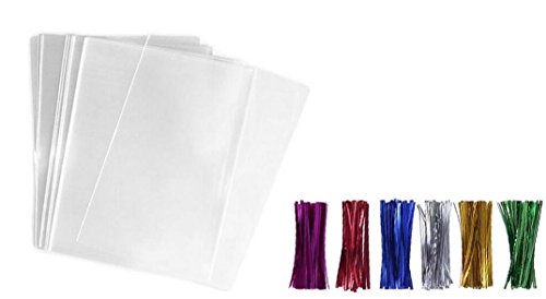 100pcs 1.2MIL Various Size Clear Flat Cello Cellophane Treat Bags Packaging Bags No Seal With 100PCS 8cm Assorted Colour Twist Ties for Bakery Cookies Candies Dessert (6x8inch)