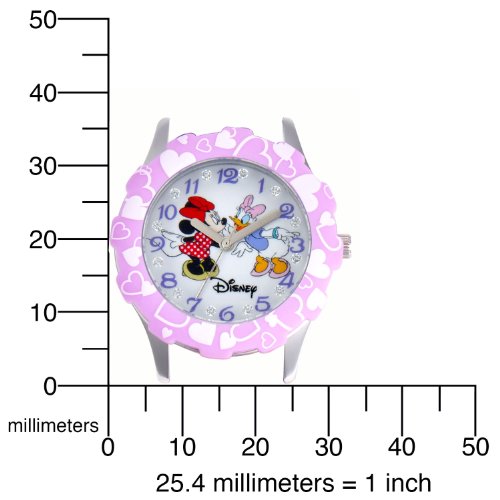 Round Stainless Steel Watch with Disney's Minnie Mouse character on dial.