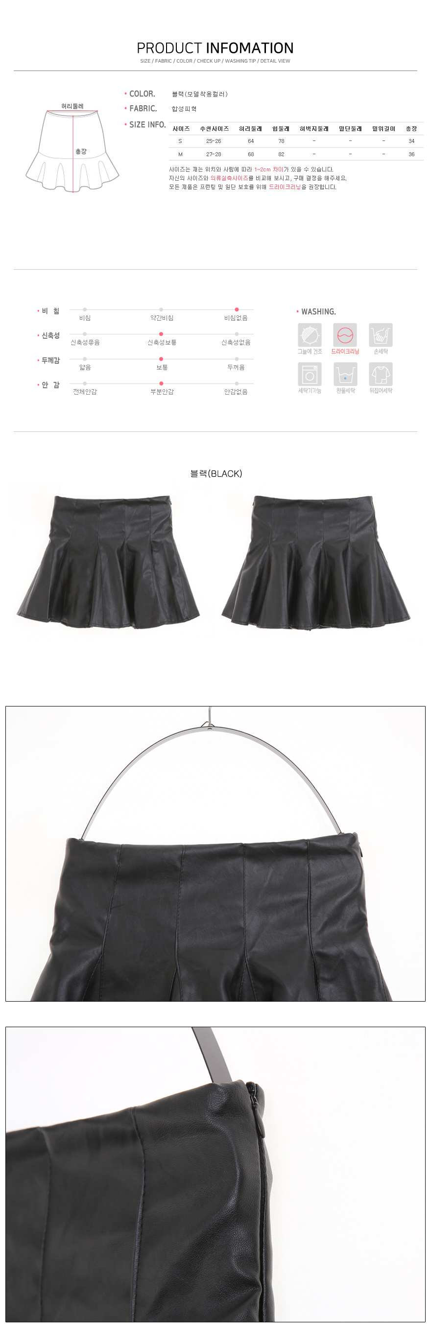 ![]() 레더미니스커트 모델피팅 :블랙(BLACK) 훌지는 실루엣이 매력적인 스커트에요. 허리라인을 깔끔하게 잡아주는 실루엣이며, 하이웨스트 라인으로 다리라인을 보다 길게 연출해 준답니다! 지퍼 여밈으로 간편하게 마무리 가능하세요. 자연스럽게 퍼지는 훌 디자인으로, 보다 여성스러운 실루엣을 완성시켜주며, 다리라인을 좀 더 늘씬하게 보여준답니다~ 안감이 팬츠로 이루어져 있어, 미니한 기장이지만 부담 없으실거에요^^ 블랙 1 가지로 나왔어요. 정 사이즈로 나와 평소에 착용하시는 사이즈로 주문 넣어주세요. 자세한 사이즈는 상세 사이즈 표를 참고해 주세요^^ ![]() ![]() ![]() ![]() ![]() ![]() ![]() ![]()
