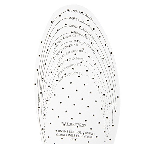 - DIMENSIONS: Sizes are marked on the surface of the sole. Simply trim your own size out using scissors. Please note: Insole Dimensions are in UK and Euro Sizes. US Conversions are as follows: Women Euro 36 (US 6), Euro 37 (US 6.5), Euro 38/39 (US 7, 7.5), Euro 40 (US 8), Euro 41 (US 8.5), Euro 42 (US 9); Men: Euro 41 (US 8.5), Euro 42 (US 9), Euro 43/44 (US 9.5, 10), Euro 45 (US 10.5), Euro 46 (US 11)