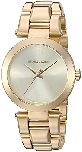 Product Description A stunning three-link brushed gold-tone bracelet gives a sleek, minimalist flair to the champagne sunray dial of the Michael Kors Delray watch. 0