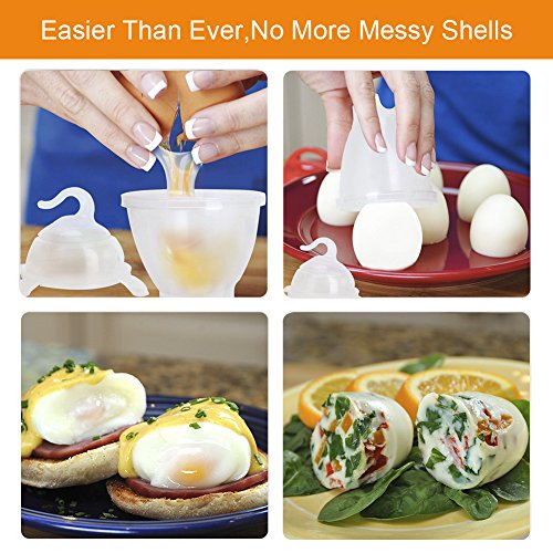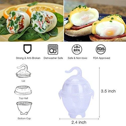 【Easy To Use】Just crack open the eggs, pour into an Egg cooking cup, boil and serve; PLEASE DISINFECT before use.It's better to spray the cups with oil sprayer before cracking the eggs, which helps to easily pouring out
