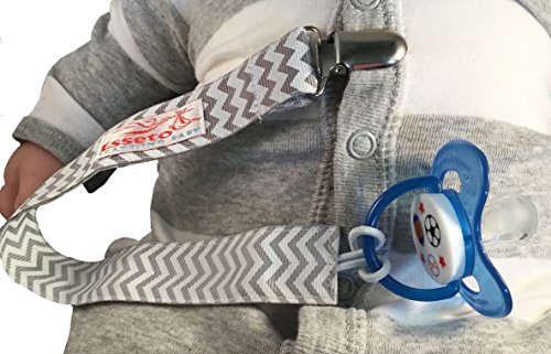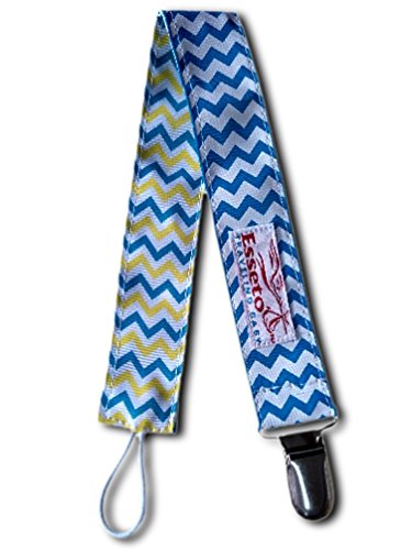-. Binding : Baby Product -. Brand : Esseto -. Color : Yellow -. EAN : 0641022750711 -. Feature : b>★ BINKY LEASH GIRL | BINKY LEASH BOY: The binky clip / leash is unisex, meaning that it can be used for boys or girls. Our colors are neutral and go with most all garments and garment colors and infant designs. / ★ NEVER LOSE YOUR BINKY AGAIN! These infant pacifier clips hold tightly onto the infant's garment and loops around the binky handle and never lets go. / ★ PERFECT GIFT: Our binky clip is something few people think of. It's only after you've lost a few dozen binky's or had to "clean" a pacifier with all the inapproP.R.Iate cleaning supplies that a new mommy or daddy start thinking about an easier way. That's where our wonderful baby pacifier leashes come in. / ★ 3 PACKS OR 1 PACK: Many other sellers of binky clips will offer 5 clips at a time. We have single clips and triple clips. There should be an option to buy exactly the number you need. 5, 10 and 12 are not always the perfect and wanted number of. / ★ DID YOU KNOW? It's easy to buy our binky clips. Simply click on the BUY / ADD TO CART button to the right and amazon will ship your order to you within 2 business days. It's that easy to order your Esseto Traveling Baby products from us. -. IsAdultProduct : 0 -. Label : Esseto -. LegalDisclaimer : This product is not to be left alone with a child unsupervised. A qualified adult should be present at all times when this binky clip (binky leash) is worn or in the presence of an infant. -. Manufacturer : Esseto -. MPN : 43220-8057 -. PackageQuantity : 1 -. PartNumber : 43220-8057 -. ProductGroup : Baby Product -. ProductTypeName : TOYS_AND_GAMES -. Publisher : Esseto -. Size : 13 inches -. Studio : Esseto -. Title : Baby Pacifier Clip | Infant Binky Leash | Light Blue Chevron | Reverse side Light Blue and Yellow Chevron -. UPC : 641022750711
