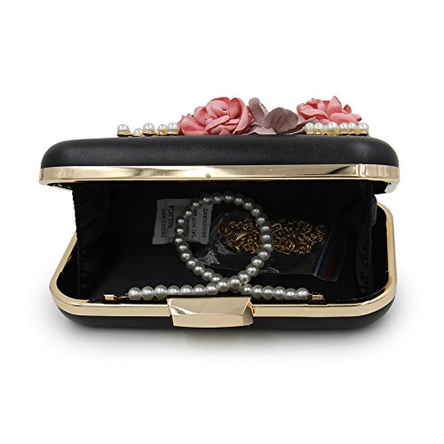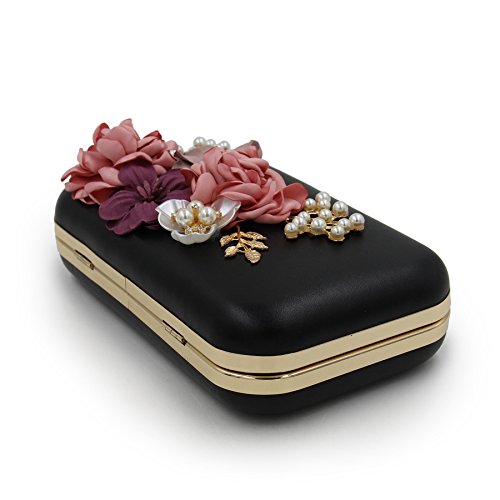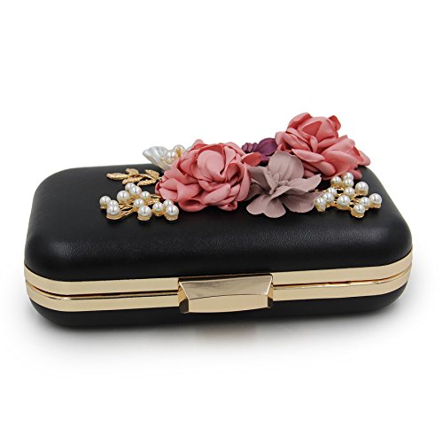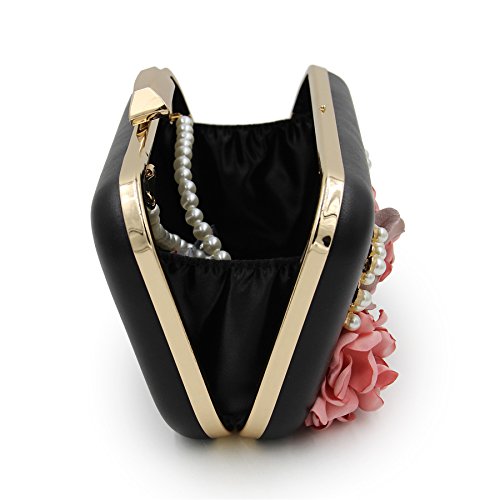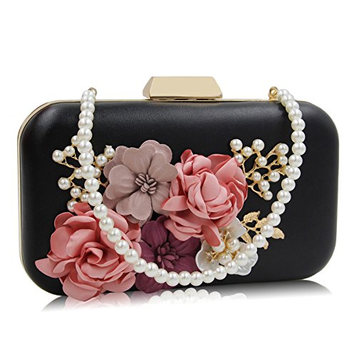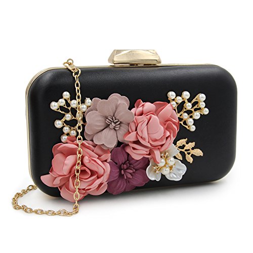-. Feature : Material:Pu leather and the surface decorated by the variety pearl and flowers which are made of satin. / Size:6.2"(L)*1.9"(W)*4.7"(H).With the removable pearl chain and gold chain,you could take in on hand or cross your body. / Design:this is a beautiful unique and pretty purse and it would be perfect for the wedding. / Capacity: The main compartment fit up 6 Plus well, mirror, a folding hair brush, small bottle of perfume, lipstick, jewelry. / Occasion :Stylish, leisurely design can be used as a daily clutch when you're out of the street and have a vocation. Exquisite, elegant design can be used as evening bag when you attempt special occasion.