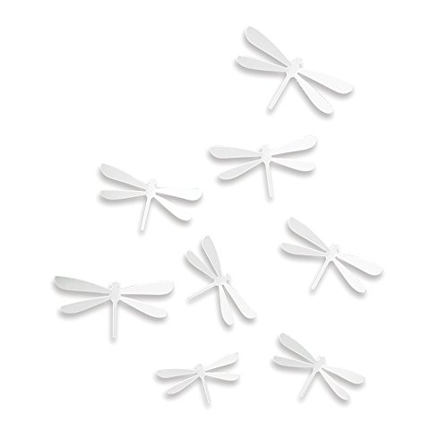 Wallflutter wall decor dragonflies are an easy, graphic way to decorate your space. Made from lightweight, molded plastic Wallflutter mount to the wall or any metal surface with adhesives that allow for endless configurations. Set of 8 dragonflies includes four sizes ranging from 4-Inch by 1/2-Inch by 2-1/4-Inch to 5-1/2-Inch by 1/4-Inch by 3-Inch . Designed by Marion Lanktree and Alan Wisniewski for Umbra- original, modern, casual, functional and affordable design for the home.