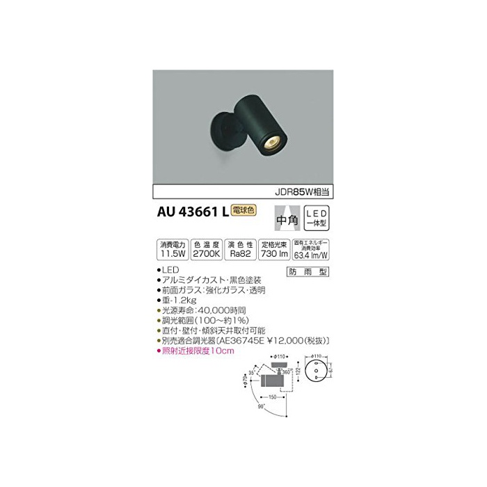 원본상품명: コイズミ照明 スポットライト 中角 JDR85W相? ?色塗? AU43661L