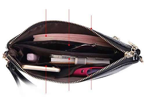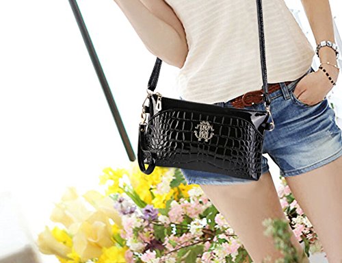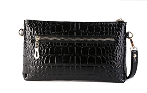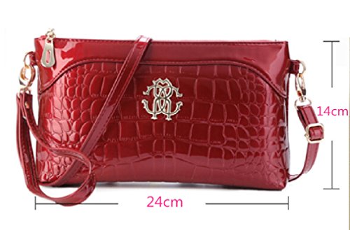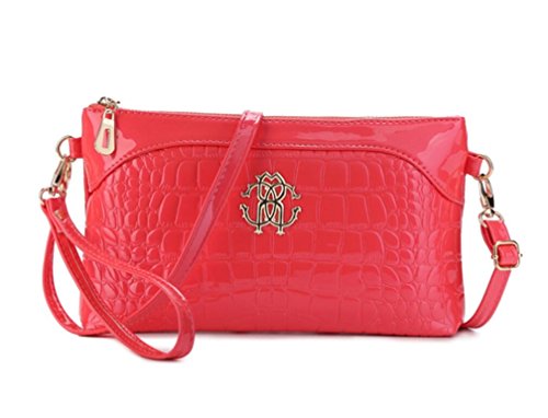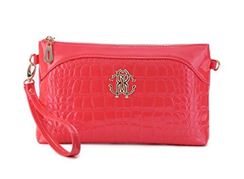 Tiny Chou Women's Crocodile Print Glossy Faux Leather Handbag Wristlet Clutch Wallet Crossbody Bag