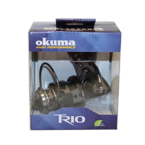 Studio : Okuma Publisher : Okuma Binding : Sports Product Description Trio spinning reels from Okuma offer a unique crossover construction. The solid one-piece stamped aluminum reel stern and rotor arm are paired with lightweight graphite side plates, providing strength where needed and weight savings where possible. The spool construction houses the drags system in an aluminum drag chamber for added stability and smoothness. 0