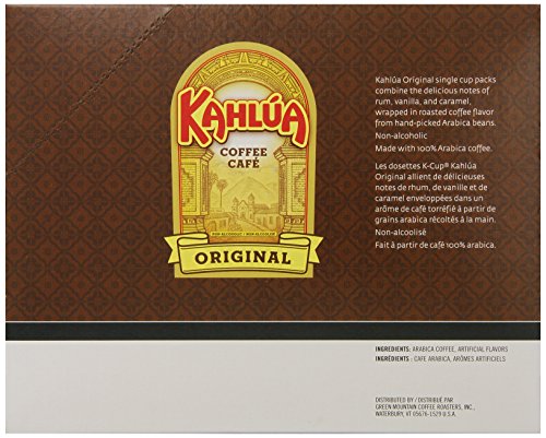 Explore Your Curiosity with an extraordinary new coffee experience. Timothys World Coffee, in collaboration with Kahlua, the worlds number one coffee liqueur, presents the new Kahlua Original Coffee Keurig K-Cup. The Kahlua Original Keurig K-Cup offers a distinctive coffee tasting experience that it is sure to stimulate the palate in an unforgettable way. Timothys Kahlua Original is the first ever liqueur branded K-Cup available in the market. It is packed in single serve portion packs, specifically formulated for use in Keurig Single Cup Brewing Systems. Kahlua and Timothys use only the finest quality 100 percent Arabica coffee beans. This mutual commitment to superior coffee ensures that the Kahlua K-Cup offers exceptional quality and a distinct taste experience. The coffee used is a smooth roast that captures the unique, rich flavors of Kahlua with accents of vanilla and caramel; it is sure to leave a lasting impression.Feature